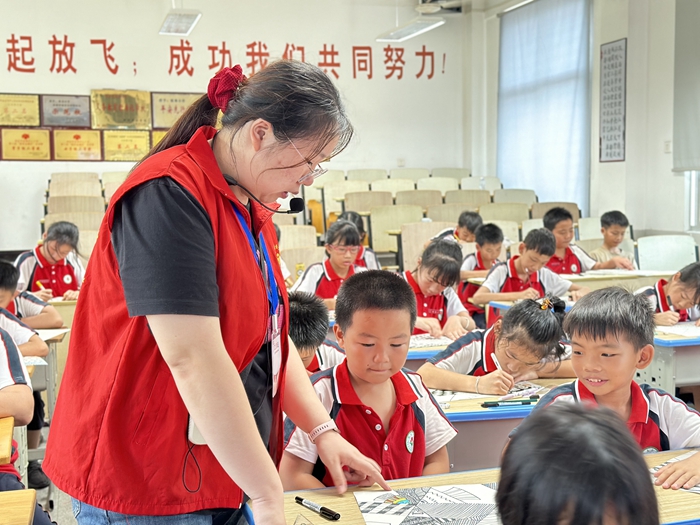 送教下鄉活動中,毓南小學教學點的志愿者正開展創意兒童畫課程