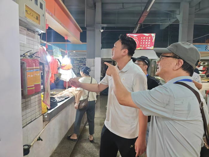 三明市民文明觀察團成員穿行在三元區紅杏商場內,對此前全國文明城市實地督查反饋問題開展“回頭看”,重點觀察各相關點位問題整改情況及常態化文明創建情況,早市高峰導致的無序臟亂現象有了極大改善。
