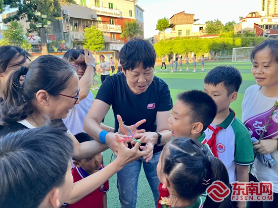 老師們一起玩翻花繩游戲。鯉城區東門實驗小學 供圖