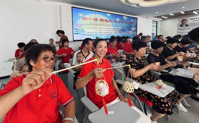 9月9日,在閩清縣新時代文明實踐中心舉辦“迎中秋、做兔燈、品月餅、話團圓——我在文明實踐中心過中秋”主題活動中,現場群眾展示親手制作的“月兔竹燈”