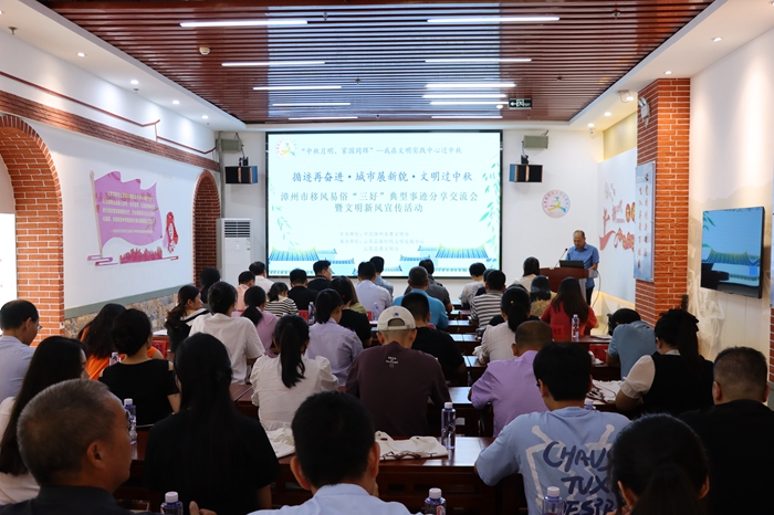 文明風9月14日訊 金秋九月,中秋月明,家國同輝。為貫徹落實習近平文化思想,弘揚中華優秀傳統文化,展示城市文明新貌,推動文明實踐提質培優工作走深走實,9月13日上午,漳州市城市展示館“云展館”進文明實踐中心暨文明新風宣傳主題活動在云霄縣新時代文明實踐中心舉辦。本次活動以“循跡再奮進·城市展新貌·文明過中秋”為主題,開展漳州城市展示館“云展館”文明城市展新貌宣傳展示、漳州市移風易俗“三好”典型事跡交流、潮劇演出、漢舟餅制作、閩南功夫茶習俗非遺項目展示等系列活動。