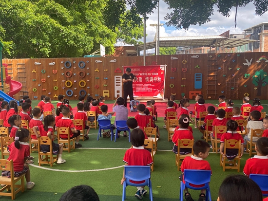 活動現(xiàn)場氣氛熱烈,每一個節(jié)目表演都飽含了對中秋佳節(jié)團圓的美好祝愿,有暖心的舞蹈《爺爺為我打月餅》,有稚嫩的童聲合唱《但愿人長久》,有深情的詩朗誦《水調(diào)歌頭、望月懷遠》。現(xiàn)場還繞“月”、“秋”、“家”的主題展開了激烈的詩詞接龍比賽。孩子們精彩紛呈的舞蹈更是將晚會推向高潮,贏得觀眾陣陣掌聲。此外,活動還設(shè)置博餅慶月、品茗賞月、燈謎祝月等傳統(tǒng)民俗游戲,吸引了眾多家庭參與。