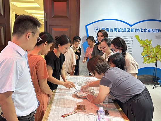 秋意漸濃,佳節(jié)將至。9月13日,泉州開發(fā)區(qū)舉辦“黨群連心慶中秋 幸福鄰里聚民心——我們的節(jié)日.中秋”主題文化活動。活動現(xiàn)場介紹了新時代文明實踐中心建設(shè)服務(wù)情況,幫助臺胞深入了解最新惠臺政策信息。活動設(shè)置冰皮月餅DIY體驗,大家紛紛動手實踐,揉面、包餡、壓模,沉浸式體驗月餅制作流程,每一步都充滿了樂趣與挑戰(zhàn)。活動現(xiàn)場還設(shè)置了“月兔跳圈”“玉兔釣月餅”等打卡游戲。現(xiàn)場氣氛活躍,歡呼聲、笑聲不斷,讓大家感受到濃濃的節(jié)日氛圍。