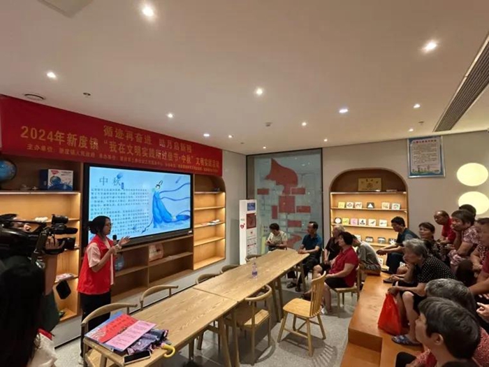 志愿者們以視頻播放與現(xiàn)場講解巧妙結(jié)合,為居民生動(dòng)闡釋中秋節(jié)知識(shí)