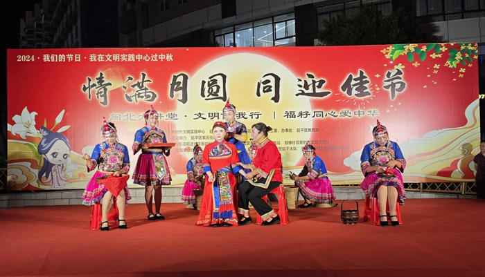 充滿真情和真誠的歌曲《如愿》、富有書香氣息的舞蹈表演《大儒小子》、緊扣中秋主題的表演《爺爺為我打月餅》等各樣文藝演出裝點了這個中秋的歡慶之夜。除了歌舞表演,晚會還設置了非遺演示《梳妝技藝》,向群眾展示了市級非物質文化遺產嶺炳洋畬族梳妝技藝,讓群眾更了解延平本地的優秀傳統和特色文化。期間還不時穿插中秋傳統習俗、民族團結、文明創建、黨的二十屆三中全會精神等有獎問答,現場群眾熱情高漲,氣氛活躍。