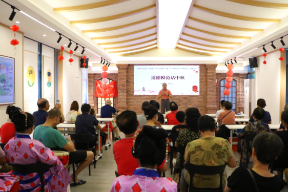 活動(dòng)現(xiàn)場(chǎng),其樂(lè)融融,洋溢著濃厚的節(jié)日氛圍。上午9點(diǎn)30分許,馬尾區(qū)道德模范陳長(zhǎng)桂率先登場(chǎng),為大家講述中秋佳節(jié)的由來(lái)和傳統(tǒng)習(xí)俗。在他的娓娓道來(lái)中,大家對(duì)中秋節(jié)的文化意義有了更深入的了解。隨后,文藝匯演環(huán)節(jié)精彩紛呈,高潮迭起。激昂有力的鼓舞《相和歌》率先奏響節(jié)日的樂(lè)章,鼓點(diǎn)如同心跳,喚醒了人們對(duì)傳統(tǒng)節(jié)日的無(wú)限遐想。緊接著詩(shī)朗誦《望月懷遠(yuǎn)》以深情而優(yōu)雅的語(yǔ)調(diào),將古人對(duì)中秋月圓的無(wú)限思緒與情感抒發(fā)得淋漓盡致,令人動(dòng)容。歌曲《十五的月亮》等精彩節(jié)目輪番上演,臺(tái)上臺(tái)下,歌聲與掌聲交織成一片歡樂(lè)的海洋。