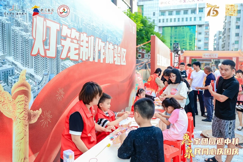 臺上精彩紛呈,臺下熱鬧非凡。現場開展了“定格幸福 月滿惠泉”公益攝影、“百人同繪長卷 禮獻盛世華誕”繪畫體驗、“百福墻”許愿互動、燈籠制作體驗、“送福進萬家”贈“福”字、“鄰距離”藝術共創展、中秋趣味游園會等活動,群眾在歡聲笑語中度過了一個美好的中秋佳節。