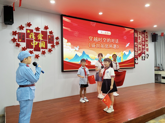“小朋友,你是從新中國來的嗎?”“對,是的。”“那我們勝利了嗎?”“我們勝利啦!”活動現場,一場穿越時空的對話《這盛世如您所愿》,巧妙地將革命歷史與現代生活相連,讓在場的孩子們深刻感受到今天的幸福生活來之不易;隨后的《放牛娃王二小》《雷鋒》等經典紅色故事,生動展現了革命先輩們的無私奉獻精神;節目《我們的祖國一個也不能少》通過報省份名的形式,強調國家統一與民族團結的重要性,進一步加深了青少年對國家完整與民族融合的認識;《少年中國說》則以激情昂揚的誦讀表演,展示了新一代青少年積極向上的精神面貌,彰顯了從歷史走向未來的堅定信念。活動還設置了歷史與發展相關的知識問答,青少年們積極參與,展現出良好的知識水平,營造出了濃厚的愛黨愛國氛圍,讓紅色基因在青少年心中生根發芽。