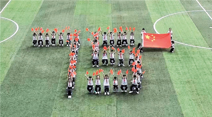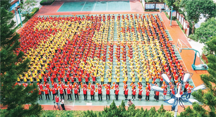 9月30日上午,伴隨著悠揚(yáng)的小提琴聲,平潭城關(guān)中學(xué)900名師生整齊列隊(duì),手持黃色與紅色氣球擺出“75”的字樣,表達(dá)了對祖國75年來發(fā)展成就的贊美和對未來美好生活的憧憬。