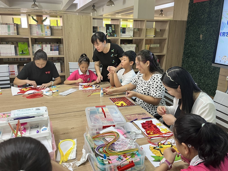 家長和師生一起制作衍紙畫 南平市委文明辦供圖