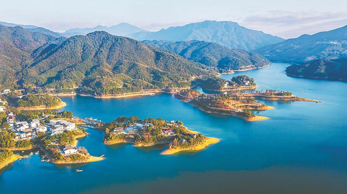 福州市連江縣小滄畬族鄉位于山仔水庫之畔,周圍山青水碧,湖光山色中自然與人文美景相映成趣。福建日報記者 林熙 攝