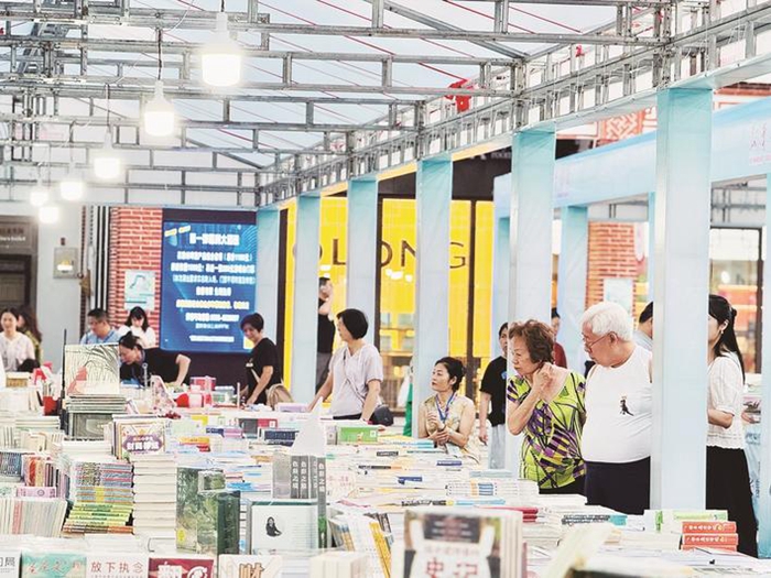 位于漳州古城西廣場的集市活動吸引許多市民前來選購圖書。李林 攝