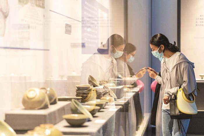 市民欣賞圣杯嶼水下考古發掘的精美瓷器(資料圖片)