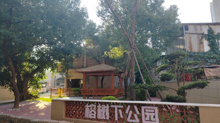 如今,走進該公園,可見其保留了原有地塊上的大榕樹,公園中建設涼亭、安裝石凳、鋪設鵝卵石步道,并搭配有綠植及木柵欄等,不僅扮靚了居民“家門口”的景觀,更為大家日常休閑娛樂提供了好去處。