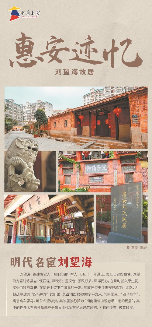 東南網(wǎng)11月6日訊(本網(wǎng)記者 林杰 閩南網(wǎng)記者 吳德月) 日前,惠安縣推出“惠安跡憶”主題系列海報,內容涵蓋惠安縣眾多歷史地標和文化遺跡,如王潮墓、劉望海故居(上圖)、弘一法師舊居、青山宮、青龍橋、辜氏祖厝、筆架寺等,通過圖文并茂的方式展示這些遺跡的現(xiàn)狀、歷史故事和文化意義。