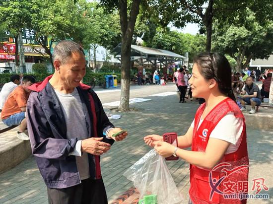 志愿者向群眾免費發放滅煙袋(翔安區委文明辦供圖)