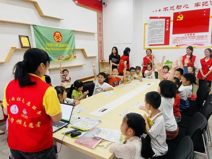 在龍橋社區(qū)黨群服務(wù)中心,孩子們學(xué)唱垃圾分類歌,在歌聲中記住了垃圾分類知識,也種下了環(huán)保的種子。同時,他們還親手DIY環(huán)保垃圾袋及參與垃圾分類知識互動問答,把環(huán)保實踐成果和“我是垃圾分類小能手”勛章帶回家。老年人互相分享家居垃圾分類小妙招,在巾幗環(huán)保講師的帶領(lǐng)下動手制作環(huán)保酵素。林阿姨說,又學(xué)會一招居家生活小妙招,一舉多得,省錢、安全、環(huán)保、還時尚,回家就動手帶動鄰居姐妹一起動手制作環(huán)保酵素。