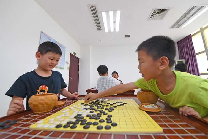 在泉港區新時代文明實踐中心教育服務平臺棋藝室,孩子們在練習圍棋對弈。(林弘梫攝)