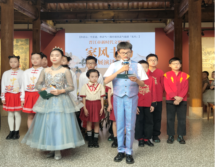 每一期家風書場活動由一所學校承辦,每周六、日上演,讓孩子們在表演中挑大梁。這不僅給孩子們提供了一個很好的展示平臺,而且帶動家風文化走進校園,讓孩子們在校內校外都能受到家風家訓文化熏陶。社會志愿者參與是家風書場的一道靚麗風景線,晉江不少志愿者積極參與家風書場活動,營造了“家校社”協同共育的良好氛圍。傳統曲藝展魅力。在征集家風書場節目的過程中,引導參演學校將家風家訓與閩南傳統文化有機結合。以傳統曲藝為主要展演形式,相聲、小品、快板、評書、南音、木偶、閩南童謠等一批批短小精悍的曲藝節目輪番上演。在潛移默化中,孩子們不僅感受閩南文化魅力,也進一步傳承淳樸向善的優良家風。