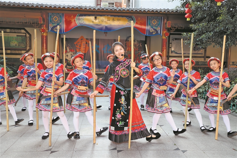 每周二下午,在福安市坂中中心小學(xué)的個(gè)性化自主校本課程上都能看到身穿畬裝的孩子,唱畬歌、學(xué)畬語、跳畬舞、打畬拳、識(shí)畬藥……畬文化通過自主課程最大程度地教授給孩子們,悄然浸潤校園每一寸空間,畬文化藝術(shù)教育已然成為該校獨(dú)具特色的教育品牌。
