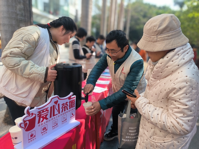 ”愛心茶攤“為過往居民提供熱水(溫泉街道供圖)