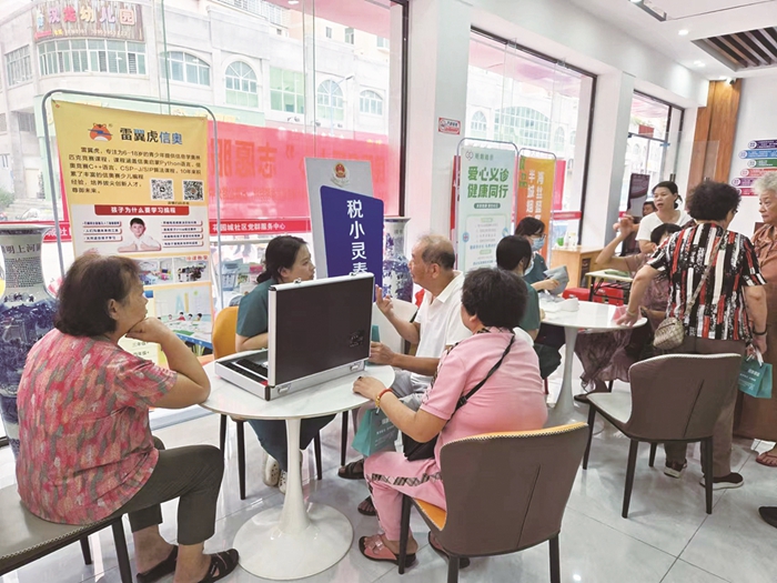 15分鐘便民生活圈提升群眾幸福感?;▓@城社區位于石獅市中心,周邊超市、美發、家政、醫藥、維修、餐飲、學校、游泳館、公交車站等應有盡有,15分鐘內就能享受到吃、穿、住、行全方位的優質服務?;▓@城社區聯合石獅市新苗第五幼兒園開展幼兒早教活動,為家長普及科學的育兒知識;聯合第二實驗小學開展各種主題教育活動,深化未成年人思想道德建設;利用轄區閑置國有資產——原市計生服務站,投入150萬元改造建設社區“黨建+”鄰里中心,占地面積400多平方米,建筑面積1200多平方米。該社區依托“黨建+”鄰里中心,為社區居民提供養老保險、醫療保險、社會救助、殘疾人幫扶、法律顧問、水電費收繳等一站式服務;同時,升級改造社區新時代文明實踐站、社區“黨建+”科技鄰里中心、兒童之家、老齡老干活動中心等,定期開展科普探索、親子閱讀、戶外研學、家庭教育、健康體檢、暑期托管等活動,讓轄區居民在家門口就能享受到全方位的便捷服務。