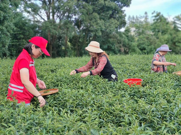 “村嫂當家”賦能小組帶領村嫂們開展采茶工作