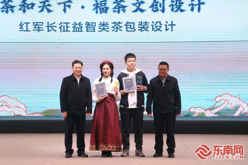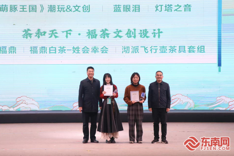 頒獎儀式上,與會領導分別為“潮向未來·海洋文創好禮”“茶和天下·福茶文創設計”“福聚山海·福鼎城市IP形象設計”三個類別的獲獎作品頒獎。