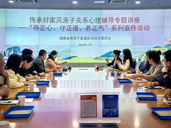 文明風12月27日訊 近日,福建省商務廳舉辦“存正心、守正道、養正氣”系列宣傳活動之傳承好家風親子關系心理健康輔導專題講座,省商務廳機關、廳屬事業單位干部職工代表參加。