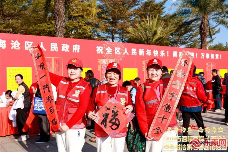 作為海滄區對臺文化交流品牌活動,書春送?;顒幼?014年創辦以來已連續舉辦十一屆,成為兩岸文化交流的一張亮麗名片。今年活動現場,來自兩岸的百名書法家齊聚一堂,通過筆墨傳情,為市民書寫春聯和“福”字,送上真摯的新春祝福。臺灣知名書法家曹原彰等人也受邀參加,與大陸書法家現場交流切磋技藝,在翰墨飄香中進一步深化兩岸文化認同,共同傳承中華優秀傳統文化,彰顯兩岸同根同源的深厚情誼。圍繞“書春送福頌華年 兩岸同根譜新篇”主題,今年還有一批富有時代精神的優秀書法作品集中亮相,生動詮釋了文化自信與民族團結的時代內涵。