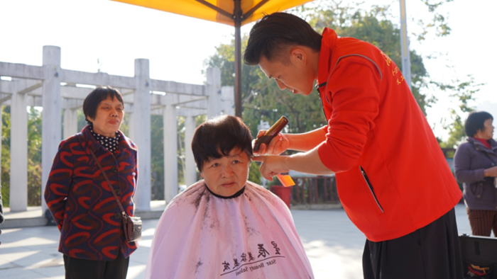 現場氛圍溫馨而和諧。在健康義診區,專業醫生為老人們提供診療服務,科普冬季養生知識,幫助他們更好地關注自身健康。義剪區的美發師們則根據大家的需求和喜好,量身定制發型,讓大家在冬日里也能煥發出新的風采。同時,書法家們揮毫潑墨,書寫著一副副對聯,將溫暖與祝福傳遞給每一個人。