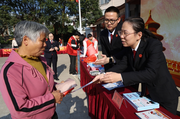 為你呈“憲”,“點單式”釋法來出擊。云霄法院志愿服務隊還常態化與結對共建的新時代文明實踐“1所3站”開展貼近實際、形式多樣的普法宣傳活動。在活動中針對不同人群,有的放矢地發放憲法、消費者權益保護法、養老詐騙、電信詐騙等普法宣傳材料,用“民言民語”講清“法言法語”,提供“一對一”法律咨詢,讓普法更接地氣。