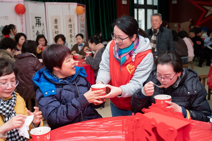 拗九粥不僅是一道美食,更是孝道文化的象征,傳遞著對長輩的敬愛與關懷。活動現場,文明實踐志愿者和小朋友們一起,將一碗碗熱氣騰騰的拗九粥小心翼翼地遞到老人們手中。香甜的福粥、溫馨的話語,讓老人們臉上洋溢著幸福的笑容,紛紛感慨:“這粥甜在嘴里,暖在心里。”