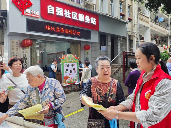 街頭發放殯葬移風易俗宣傳單 梅山街道 供圖