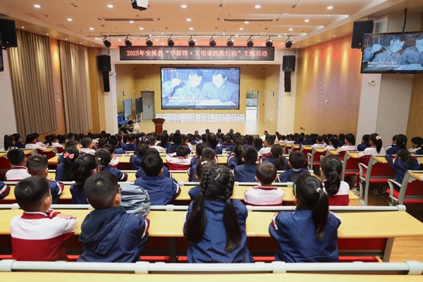 安溪縣第八小學(xué)學(xué)生共同觀看學(xué)雷鋒宣傳短片。安溪縣委宣傳部 供圖