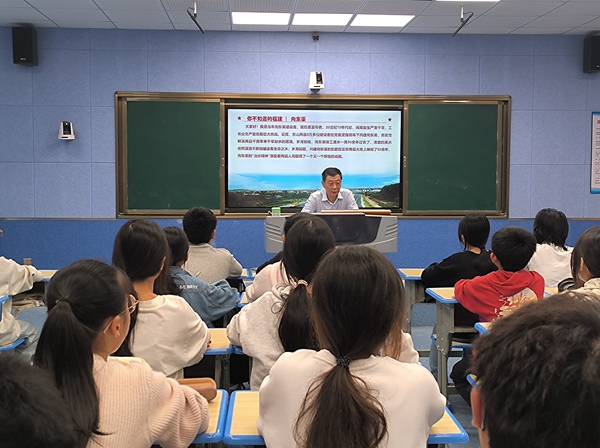 “中國好人”、省五星級志愿者謝鵬志在教室里講述著向東渠建設的故事