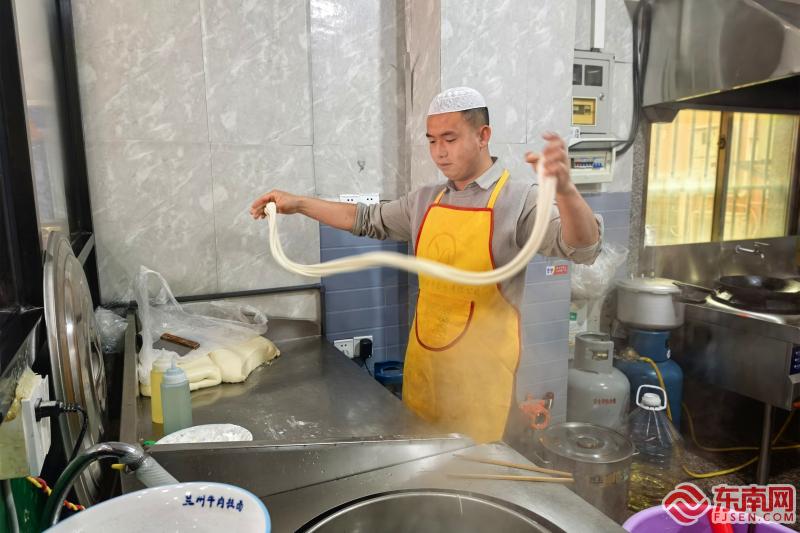 在山邊社區經營清真蘭州牛肉拉面店的馬進學繼續“愛心接力”(東南網記者 劉瑋 攝)
