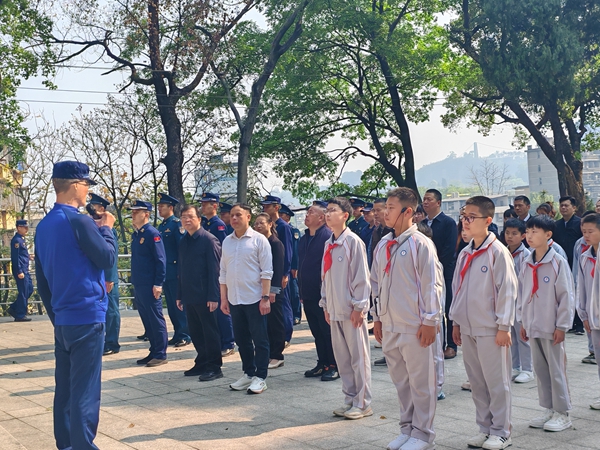 活動在莊嚴肅穆的氛圍中拉開序幕,全體人員面向烈士紀念碑肅立,行鞠躬禮,并全場默哀三分鐘,表達對革命先烈的深切哀悼與崇高敬意。隨后,學生代表與官兵代表共同擦拭烈士墓碑,敬獻花籃、鮮花與寄語卡片,齊聲朗誦《少年中國說》,表達對革命先輩的深切追思。 “今天的幸福生活是先烈用生命換來的。我們要好好學習,長大后報效祖國!”東門小學一名學生在寄語卡片上寫道。