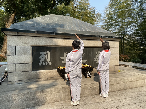 活動后,少先隊員代表陳菲艷接受采訪說道:“參加此次祭掃儀式,讓我知道了我們生在國旗下,長在春風里,責任是非常重大的。就如毛澤東同志所說:‘今日長纓在手,何時縛住蒼龍?’先輩們以凡人之軀比肩神明之精神力量所鑄就的長纓揮灑于血脈,新一代的蒼龍必定不會隕落,所以我們要好好珍惜先輩們為我們打下的大好河山。好好學習,天天向上,努力建造祖國更加美好的未來。”