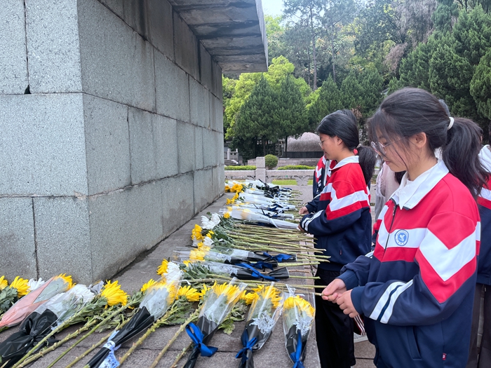 青少年們懷著崇敬之情,敬獻(xiàn)鮮花,寄托對(duì)革命先烈的深切哀思