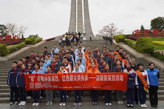 3月29日,由鼓樓團區委、鼓樓區關工委主辦的“銀”青相伴祭英烈,紅色薪火共傳承——清明祭英烈活動在福州市文林山革命英烈紀念園順利舉行。來自福州多所學校的百名青少年與洪山鎮大凰山社區的“五老”代表薛中柱老同志一同祭拜革命先烈,汲取奮進力量。