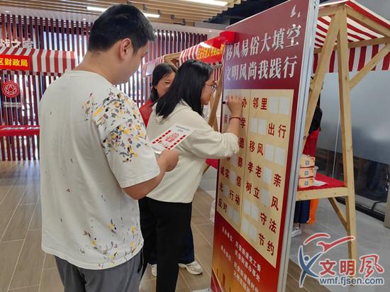 活動最后,參與者移步至文明市集和互動體驗區。現場設置了政策宣傳攤位,并巧妙地融入了八項規定和文明新風內容。