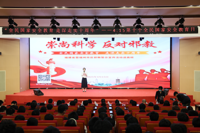 在福建船政交通職業學院活動現場,工作人員通過設置警示宣傳展板、播放警示視頻、開設宣傳講座、發放宣傳手冊、宣傳品和文藝演出等形式向廣大師生講解國家安全是什么、國家安全包括哪些方面、維護國家安全的具體舉措以及邪教的特征和危害、邪教和宗教的區別、如何識別辨別邪教,號召廣大師生“崇尚科學,反對邪教”。活動通過各種數據和實例深刻闡述維護國家安全的重要意義,讓師生們深刻認識到維護國家安全無小事。