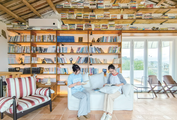 在君山片區的西西里咖啡書屋,游客沉浸在書海里。