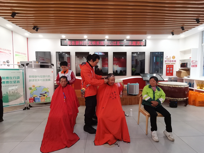 天氣漸熱,為應對夏季的高溫天氣,活動現場特別開設了“防暑急救知識”健康講座。講座從中暑的誘因、癥狀到科學預防和應急處理,通俗易懂地普及了高溫防護知識,為戶外勞動者撐起一把“健康防護傘”。醫護人員還貼心安排了免費血壓等檢測服務,耐心解答環衛工人的健康疑問,并針對個人情況給出專業保健建議。“平時工作忙,根本沒時間體檢,今天不僅能免費檢查,還能咨詢醫生,太方便了!”張阿姨連連稱贊。此外,現場還提供了“一元理發”志愿服務,理發師們一邊為“城市美容師”精心修剪發型,一邊嘮著家常,歡聲笑語不斷。“這活動真不錯,剪得精神還是免費的。”王叔摸著自己的新發型,笑得合不攏嘴。