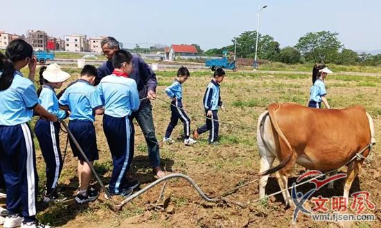 孩子們體驗耕地(翔安區委文明辦供圖)