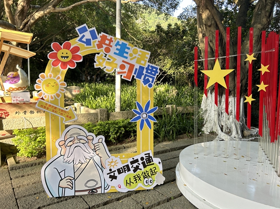 文明旅游宣傳展板吸引游客打卡拍照。張鈺琪 攝