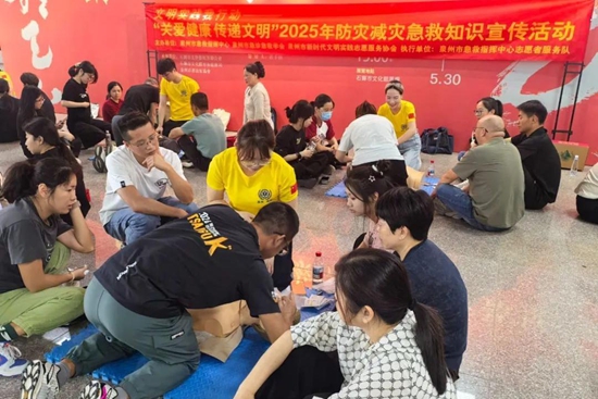 為助力構(gòu)建“人人會急救、人人敢施救”的文明社會,“五一”期間,泉州市委文明辦聯(lián)合市急救指揮中心部署6場“關(guān)愛健康 傳遞文明”2025年防災(zāi)減災(zāi)急救知識宣傳活動。據(jù)統(tǒng)計,活動共動員88人次助教志愿者,惠及群眾2200人次。