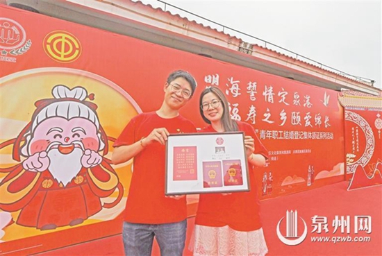 泉港一對新人展示結(jié)婚證書(林弘梫 攝)