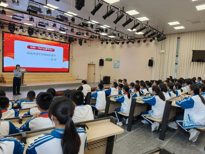 鼓西派出所游丹虹警官圍繞相關法律法規等,結合校園霸凌、網絡安全等典型案例,通過情景模擬與法律條文解析,為在場學生上了一堂生動的法治課。她著重講解如何應對校園欺凌、分辨網絡風險,強調“保護自身安全是第一準則”,引導青少年增強法治意識與自我保護能力。